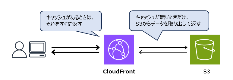 CloudFrontに限らず、「よく使うデータを一時的に溜めておいて、次に備える」ことを「キャッシュする」と言います!